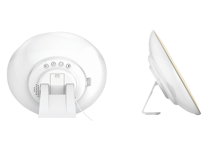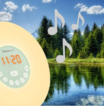At the end of the sunrise simulation, when the light is at its brightest, complete your wake-up with a choice of 6 gentle natural sounds such as sea, birds and forest. Sound level is adjustable (1 to 15 levels).